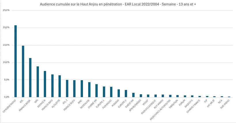 - Plus spécifiquement sur le Haut Anjou : La radio retrouve son leadership, loin devant ses concurrents.